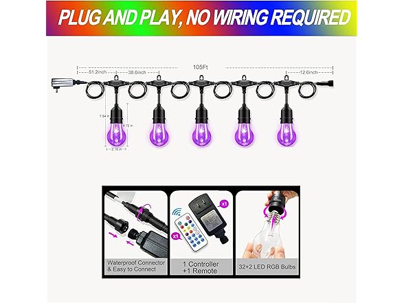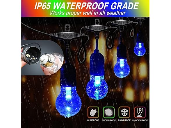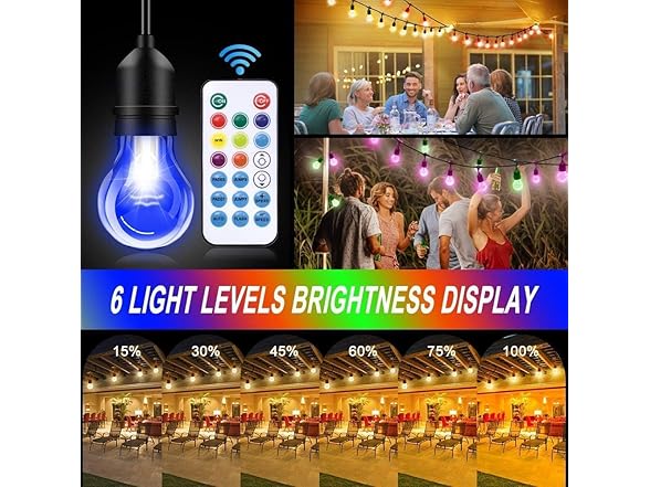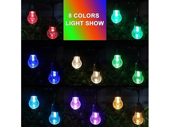 - Dimmer Compatible&Perfect Atmosphere: Adopting the most advanced LED chip technology, this RGB lights string glow in TRUE colorful light through clear bulbs. It will create the best mood and aesthetic light show for any patio, deck, backyard, porch, cafe, party, holidays and more.