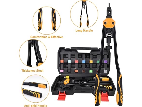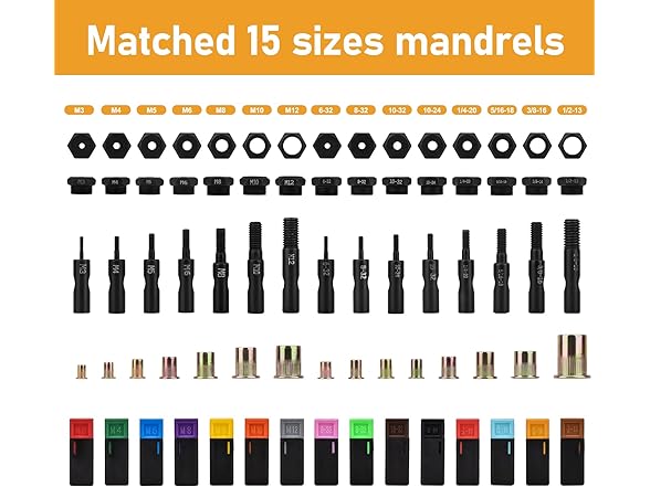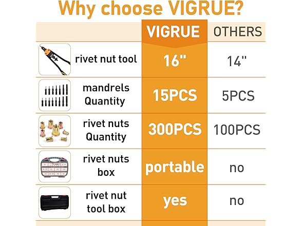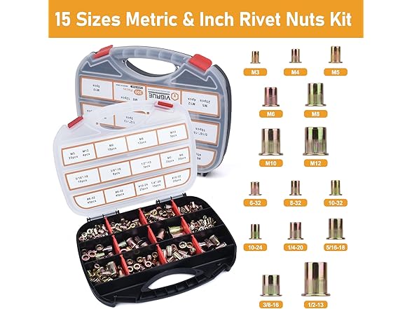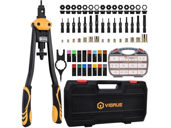 VIGRUE 16'' Rivet Nut Tool Kit Nutserts Rivnut Hand Tool Set with 15PCS Metric & SAE Mandrels and 300PCS Rivet Nuts Assortment