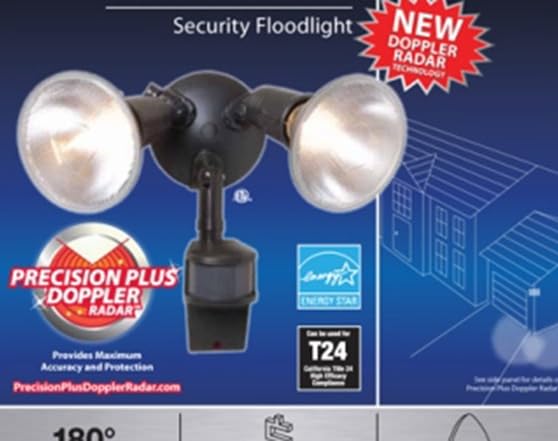 The MS185D is a 180° Motion sensor, 200 Watt PAR security floodlight. Precision Plus Doppler Radar™ combines Doppler Radar with traditional PIR (dual technology) which protects your home with improved reliability, area coverage and stable performance. Motion sensor turns lights ON automatically when motion is detected and OFF after a pre-selected time delay (1 or 12 minutes). Integral photo cell design prevents lights from turning ON with motion during daylight hours (auto modes). Universal cover plate mounts to standard recessed or surface mounted junction boxes.