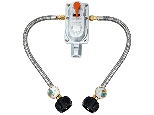 - Auto Changeover - The dual propane tank connection kit features an automatic changeover system that connects two propane tanks and switches between them when one runs out, avoid sudden loss of gas supply, saving you time from switching propane tanks.