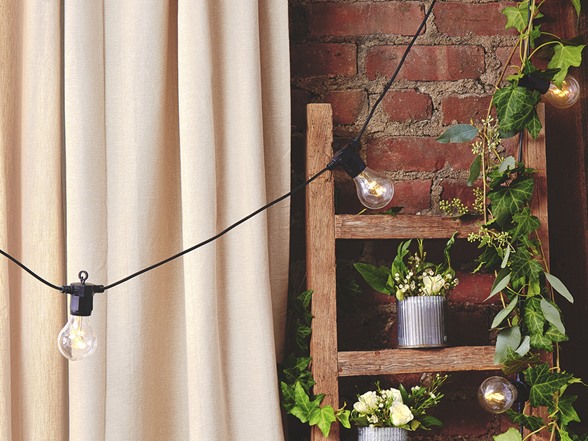 These connectable plug-in patio lights are the perfect addition to your summer outdoor lighting needs. With built-in LED bulbs, enjoy a more efficient way to light up your backyard. A great way to set the mood for your next outdoor dinner party or just to simply watch the sunset during these warmer nights! Lace a single strand between posts or across a fence, or connect up to 3 and cover your space's entire perimeter for a truly impressive display.