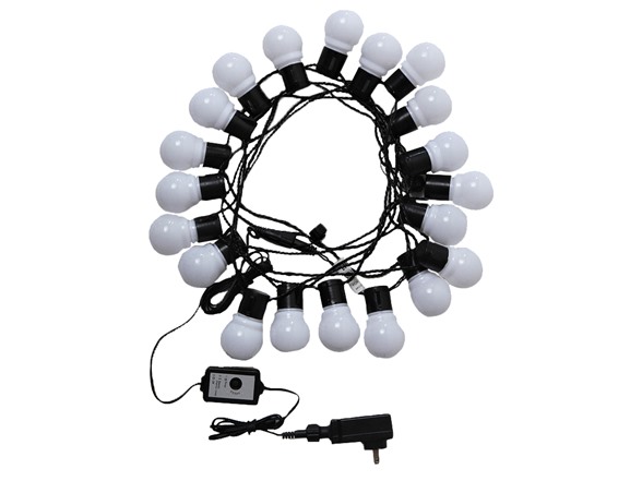 - (1) LampLust 25.5 ft 20 LED Decorative White Globe Connectable Plug-In Outdoor Party String Lights