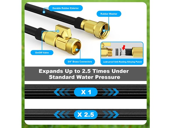 - No More Leaks -- The water pipe is equipped with 3/4-inch standard solid brass fittings and leak-proof rubber washers, capable of withstanding high water pressure. Therefore, you don't have to worry about the hose rusting, leaking, or bursting. This hose can be interconnected to achieve longer lengths as needed, such as 150 feet, 200 feet, and so on.
