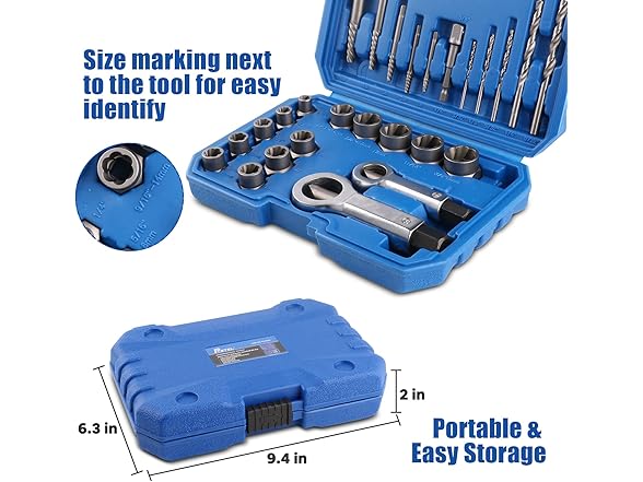 Easy Storage: Whole set is packed in a plastic box in order for convenient storage and carry, blow-molded case lets all the bolt remover stay organized.