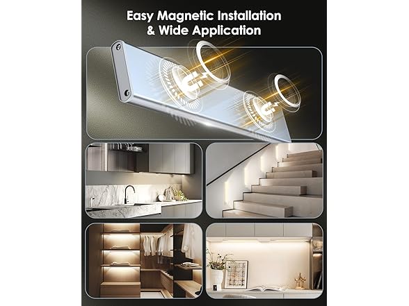 - WIRELESS INSTALLATION: These kitchen lights come with a strong magnet and adhesive iron sheet for quick, tool-free installation. Sensor lights are easily removable, offering flexible lighting for kitchens, closets, cabinets, pantries, basements, stairs, hallways, bookshelves, and more. Perfect for temporary illumination, recharging, or repositioning