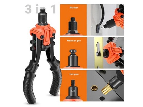- 3-in-1 Multi-Kinetic Tool: This innovative tool combines the functions of a rivet gun, rivet nut tool, and reamer into one, offering versatility and convenience for your toolbox.