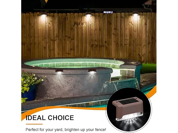 - Widely Applied: the solar fence lights can be placed almost anywhere outdoors, such as outdoor railings, stairs, steps, decks, swimming pools, walls, porches, passages, drainage ditches or other outdoor places that need decoration and lighting