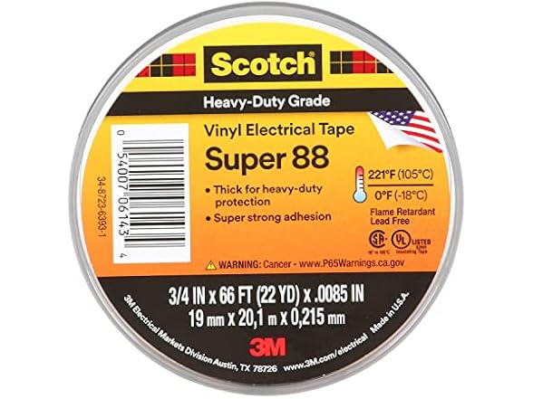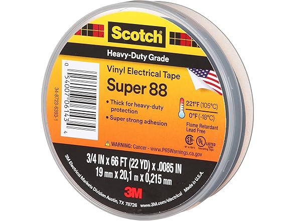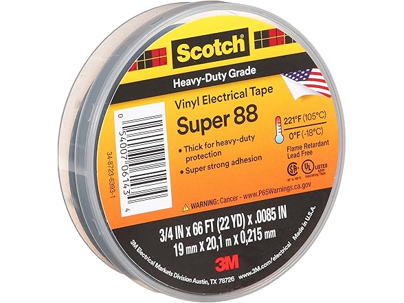 3M Super 88 Vinyl Electrical Tape, .75 in x 66 ft, Black, 1-Roll