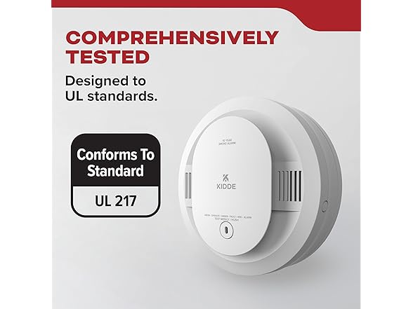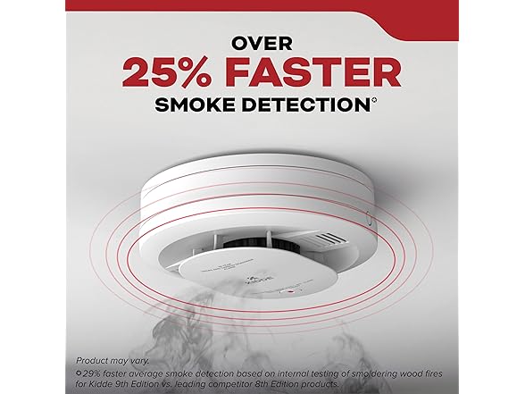Tested to meet the latest UL standards to safeguard your home from smoke hazards. * 29% faster average smoke detection based on internal testing of smoldering wood fires for Kidde 9th Edition vs. leading competitor 8th Edition product ** In terms of consistency and range of obscuration rate, based on internal testing for Kidde 9th Edition vs. leading competitor 8th Edition products. *** When compared to prior Kidde generations of smoke alarms. **** Different models offer different interconnection options and requirements. Check the User Guide for more info.