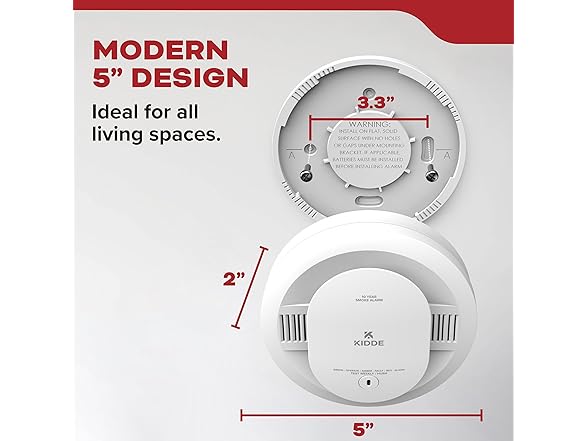 - (3-Pack Or 6-Pack) Kidde Smoke Detector, 10-Year Battery Powered, with LED Status Lights, 85 dB Alarm, 5-inches
