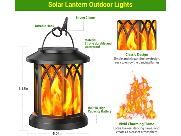 【Vivid Dancing Flames & Brighter 】Solar lights outdoor is modern and classic design. Mimic the appearance of real candle shapes and designed as a dancing vivid flame, which makes solar lanterns outdoor waterproof look so elegant and fervent, gives off beautiful lighting at night. Solar lantern use upgraded LED beads, which creates a romantic and welcoming ambiance and are brighter than other solar lanterns. This solar lights is perfect for your yard, garden, halloween and Christmas decoration