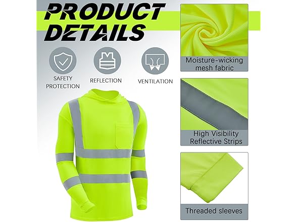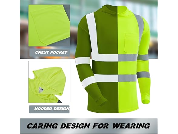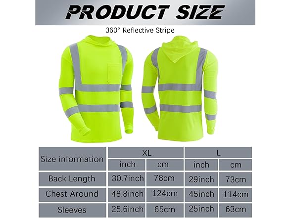 - 360 Degree Reflective Strips: the long sleeve high visibility shirts men feature 360 degree high visibility silver strips bright reflective which are able to draw attention in low strong light to keep you safe