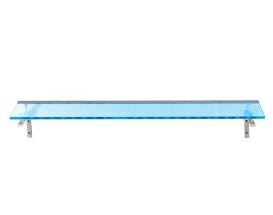 - Shelf housing is formed steel 5/8” thick by 1-1/2” deep with black end caps and retains the glass correctly in line with the integrated LED strip. Wiring with connector exits at far end of shelf.