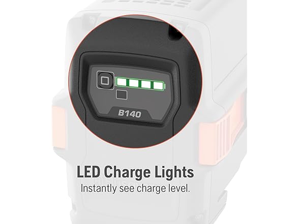 - LED CHARGE LIGHTS: Husqvarna batteries feature an easy-to-read intuitive 3-LED charge and battery life indicator