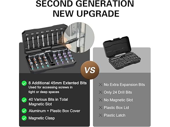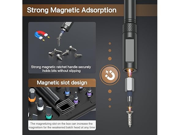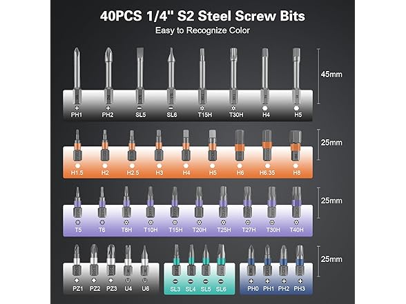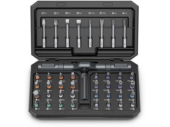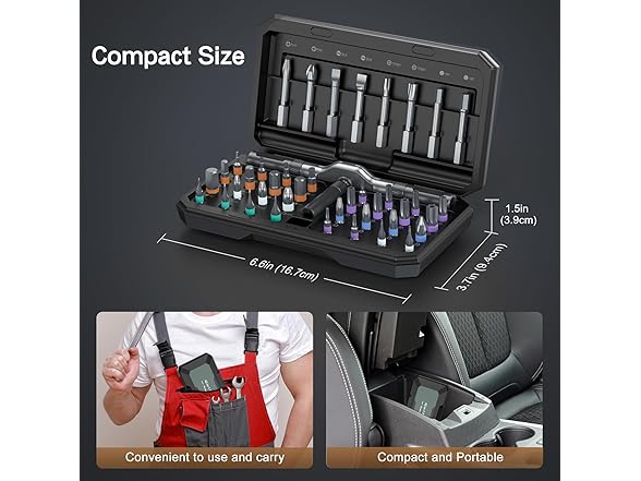 - Strong Magnetic & Easy Identification - Features a magnetic handle for secure bit placement and a convenient magnetic slot within the case to recharge the bits’ magnetism as needed. Color-coded bit rings ensure quick and easy identification, improving work efficiency and simplifying organization. This magnetic screwdriver set effectively tackles various tasks, including home appliance repairs, home furniture repairs, and automotive maintenance.