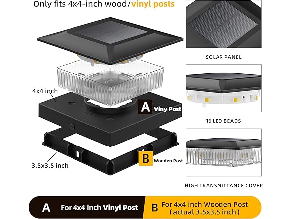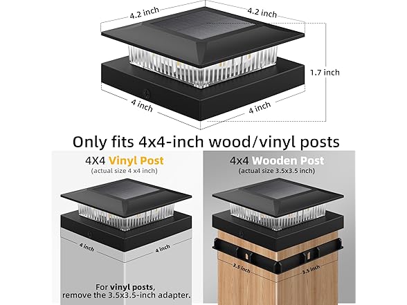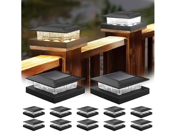 4x4 Solar Post Cap Lights 12 Pack, Fence Post Solar Lights with Warm White/Cool White, Only Fit 4x4 Wood/Vinyl Posts, Waterproof Outdoor Deck Post Light for Deck, Fence, Porch(Black)