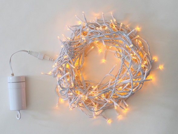 - 200 warm white LEDs a long a twisted white cable with matching white battery box