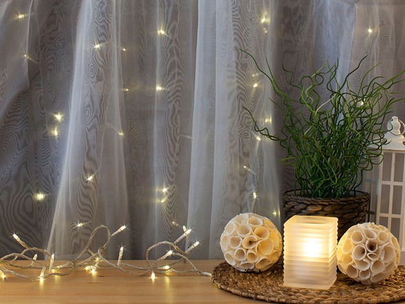 This strand of 200 soft white LEDs is a perfect addition to any indoor or outdoor space with their warm glow and clear wiring, easily blending in with your current motif. Each strand of lights, includes a 6-hour timer and 8 unique lighting sequences to transition seamlessly from a static glow and 6-hour timer, perfect for your next dinner party to a constant dancing flash or twinkle for you holiday decor. The included battery pack makes installation quick and easy without the hassle of additional power cords.