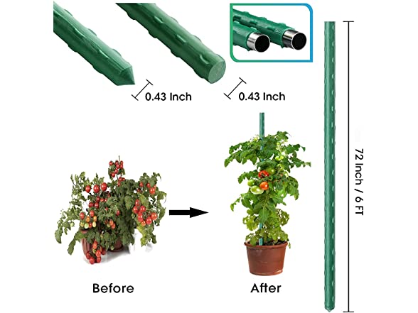 6Ft 25Pcs Plant Stakes Garden Tomato Sticks Supports for Potted Cucumber Strawberry Bean