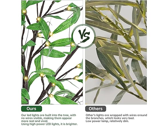 - 【Lifelike Design】Our 7 Feet Lighted Olive Tree features a natural-looking brown trunk with 17 branches adorned with 340 exquisite olive leaves. Each leaf is carefully crafted with clear veins, giving the tree a realistic appearance that will enhance any home decor.