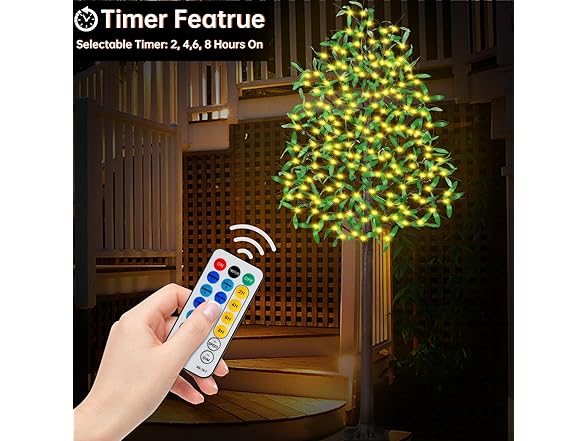 - 【Convenient Remote Control】Our Faux Olive Tree decor comes with a 19-key remote control that offers various functions, including a timer (2/4/6/8 hours daily), dimming options, and 8 different flashing modes. The memory function ensures that the tree retains its previous settings even after power loss, eliminating the need for frequent adjustments.