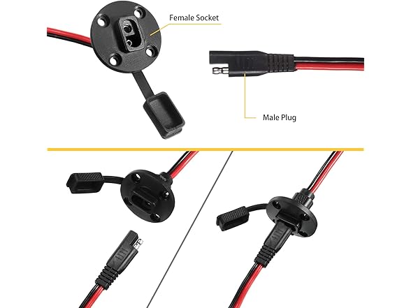 - Quick connecting: compatible with SAE port, creating a weatherproof solar panel mount flush connector for your power socket, which is convenient and fast to connect and use