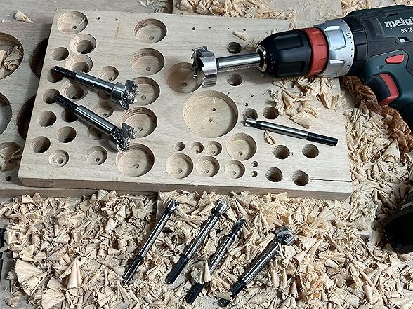 - ✅ Specifications: 8PCS includes 1/4" (6.3mm), 3/8" (9.5mm), 1/2" (12.7mm), 5/8" (15.8mm), 3/4" (19.0mm), 7/8" (22.2mm), 1" (25.4mm), 1-3/8" (34.9mm) forstner bits