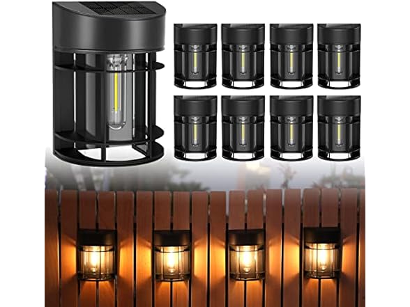 Solar Fence Lights Outdoor, 8 Pack Waterproof Solar Lights Outdoor, Outdoor Solar Light Fence Light for Garden Fence Post Step Stair Backyard