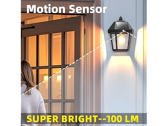 - Solar porch lights outdoor equipped with an advanced LED light source. Mode 1 is Motion-Sensing High-Brightness, offering a bright view upon detecting motion for safety. Mode 2 combines Low Light with Motion Sensing High Brightness. It gives a soft glow at night and switches to 100 lumens when sensing motion, ensuring clear visibility. Mode 3 is the Low-Brightness Energy-Saving Mode, operating at 20 lumens all night, perfect for areas like corridors and balconies. It conserves energy and provides a gentle illumination without disruption, catering to diverse lighting needs and enhancing your outdoor experience with its versatility and functionality.