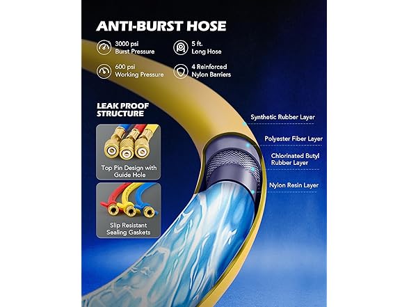 - COLOR-CODED HOSES: Blue for low, red for high, and yellow for charging, these PVC hoses have 4 reinforced layers to work with daily pressure up to 600 psi (3000 psi burst pressure)