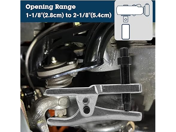 - Adjustable Opening: Ball joint tool includes a removable pin to fit into two pivot points,opening range from 1-1/8"(2.8cm)to 2-1/8"(5.4cm),suitable for wider work areas and different spherical joint sizes.