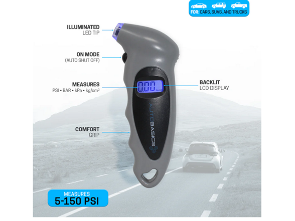 Built for accuracy and convenience, the Digital Tire Pressure Gauge delivers quick, reliable readings to help you keep your vehicle safe and performing at its best — whether at home, on the road, or during outdoor adventures.