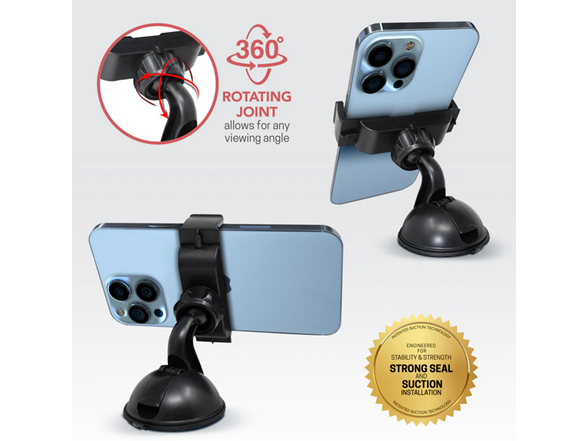 Industrial-Strength Suction: Equipped with a powerful suction base that adheres securely to dashboards and windshields, maintaining stability even on bumpy terrain.