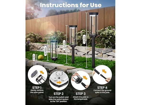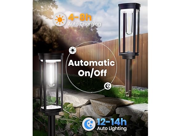 - Easy to install and automatic on/off: The ALFIOT solar powered outdoor lights is easy to install and does not require any wiring. It only takes a few seconds to set up and place the lights in your garden, yard, or path. The lights has an automatic on/off feature that senses the ambient brightness and turns on at night and off at dawn.