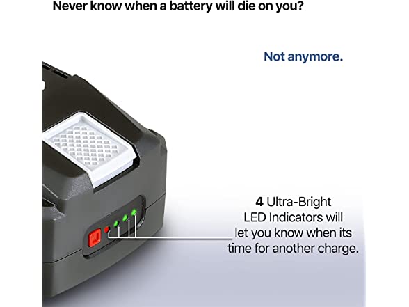 - SAFETY & PROPER USE - AlphaWorks Batteries are designed with a resilient impact resistant insulating case for long lasting life & protecting the battery in adverse climate conditions. Our Alpha Battery has a charge indicator button but when using the Charger, the indicator light will notify you at what stage the battery is in its charge cycle. RED LIGHT = Charging, GREEN LIGHT = Charge is Full (complete) or Disconnect. DO NOT OVER CHARGE BATTERIES, can result in battery cell damage.