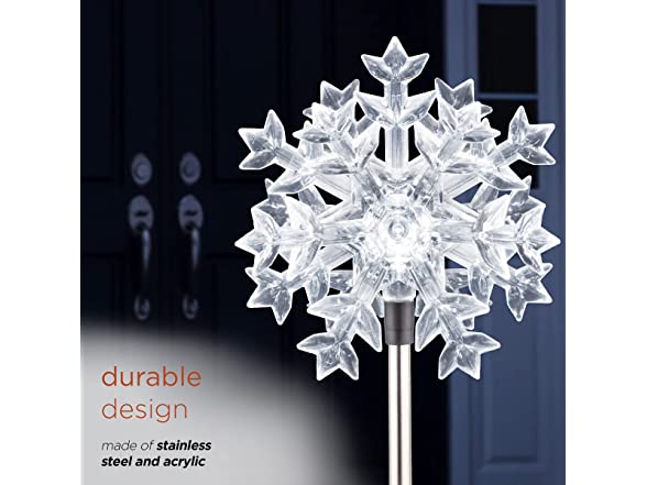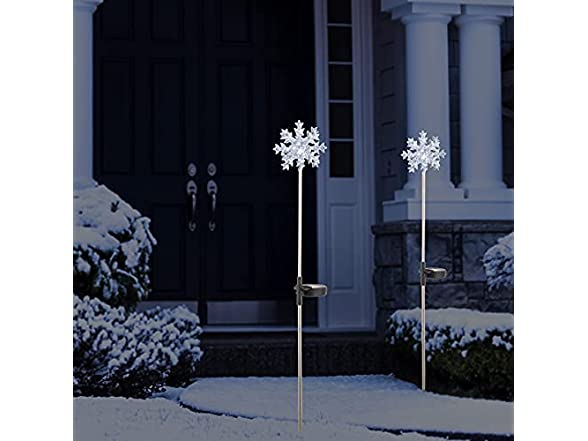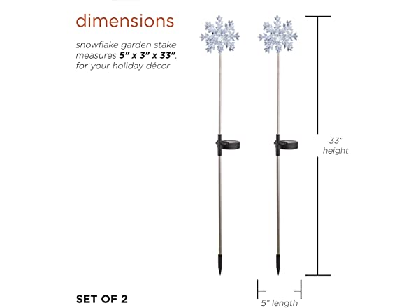 In the Box:- (1) Alpine Corporation SLC131SLR-WT-2 Alpine 33" Tall Solar Snowflake Cool White LED Light-Set of 2 Garden Stake, Multicolor