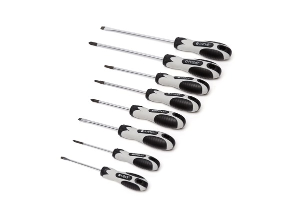 - Includes 8 screwdrivers: SL1/8 x 3", SL3/16 x 3", SL1/4 x 6", PH0 x 3", PH1 x 3", PH2 x 6", T15 x 4", and T20 x 4"