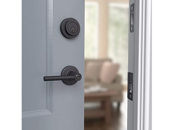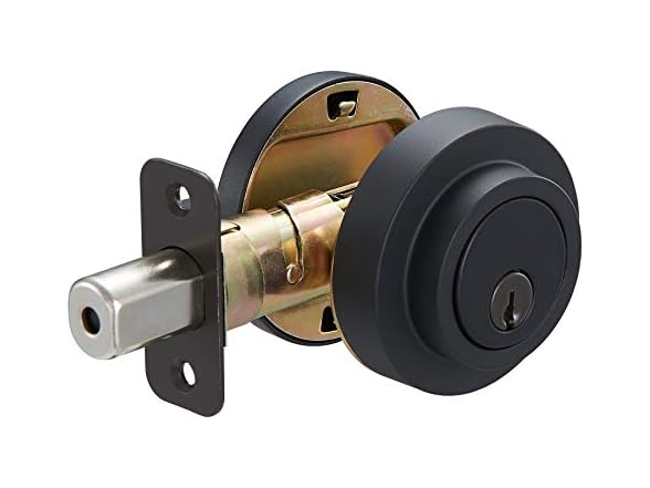 Amazon Basics Contemporary Round Deadbolt Door Key Lock, Single Cylinder, Matte Black, 1-Pack