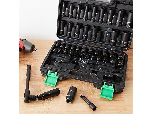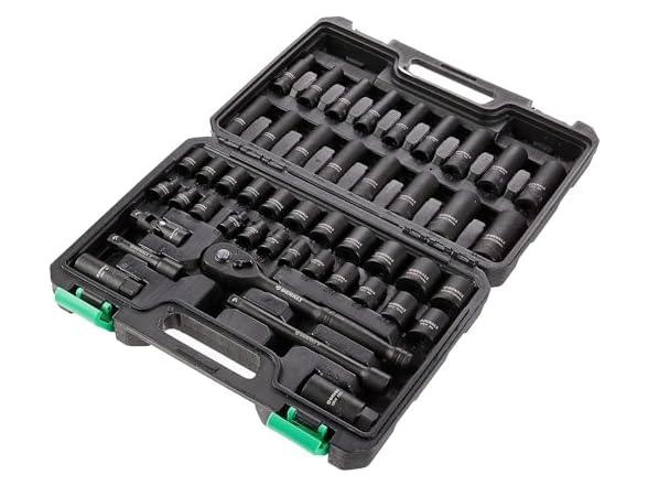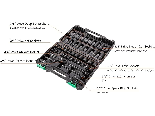 Amazon Brand - Denali 46-Piece 3/8-Inch Drive 6 & 12 Point Shallow/ Deep Socket Set and 72 Teeth Reversible Ratchet, SAE/Metric Size With Carrying Case, 13.1 in x 9.7 in x 3 in
