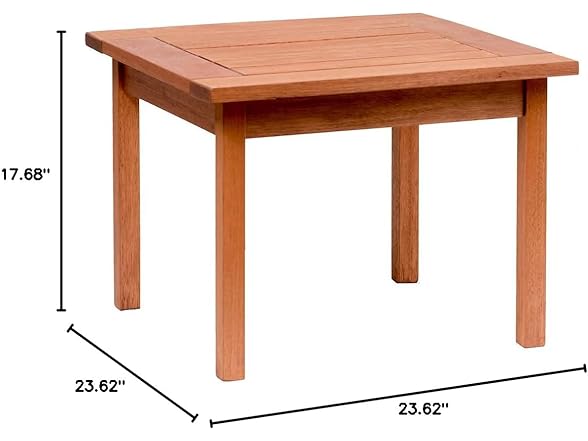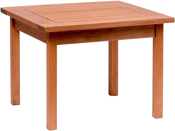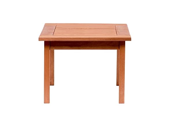 - High quality certified Eucalyptus side table in a rich wood-brown color. This chair is ideal for both indoors and outdoors and will make your patio or living room an elegant space to enjoy with family and friends.