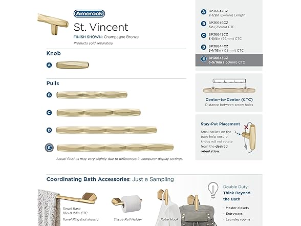 Amerock | Cabinet Pull | Champagne Bronze | 6-5/16 inch (160 mm) Center to Center | St. Vincent | 1 Pack | Drawer Pull | Drawer Handle | Cabinet Hardware