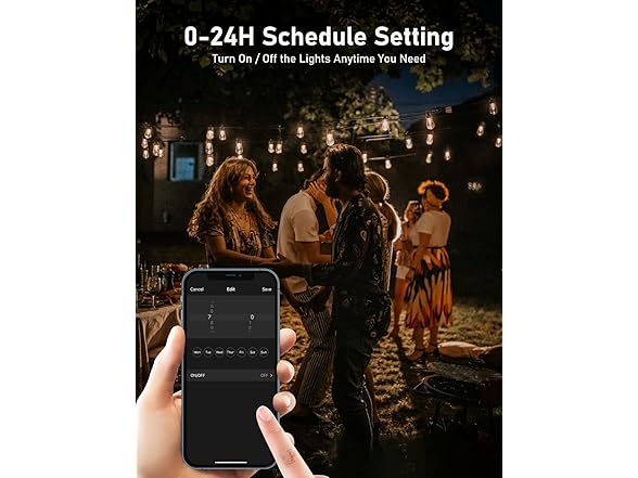 - [Schedule Function] Automatically turn on or off your outdoor lights at your specified times with customized schedule.