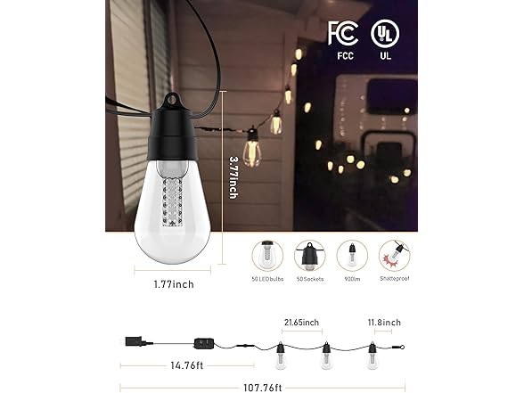 - [WIDELY USED] These string lights for outside could be commercial used and is perfect for lighting up your backyard, patio, porch, balcony, gazebo, pergola and other outdoor areas.