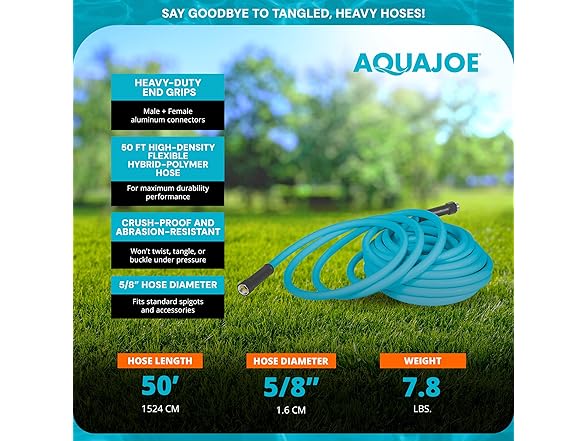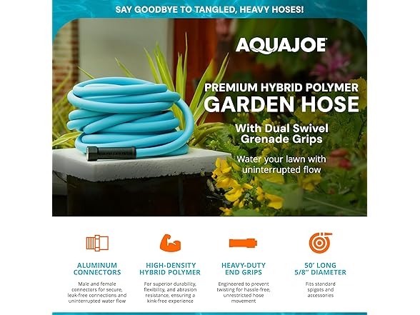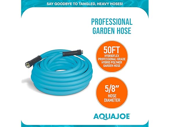 Aqua Joe 50' Professional Grade Garden Hose with Dual Swivel Grenade Grips, Kink-Free and Abrasion Resistant Flexible Hybrid Polymer