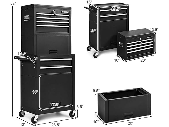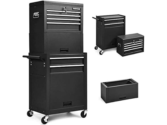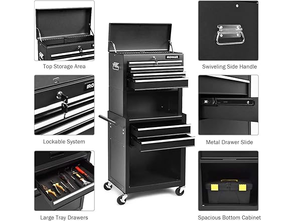 - Free Combination & Security Guarantee: The whole storage cabinet can be divided into 2 small boxes for different purpose, and you can detach or combine it according to your needs. The top drawer with locking system not only protects your tools, but also keeps your children away from heavy tools.