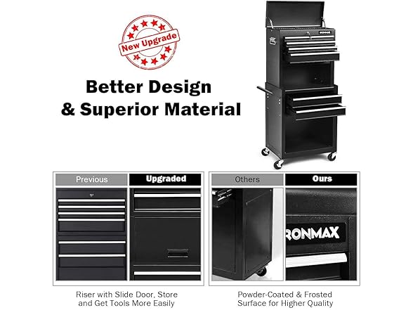 - Selected Material to Ensure Durability & Stability: Made of high quality cold-rolled steel, the drawer is durable and stable, and it can hold up to 22 lbs. Also, the surface of the toolbox is coated with exquisite powder to prevent the toolbox from rusting and staining.