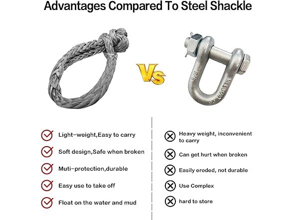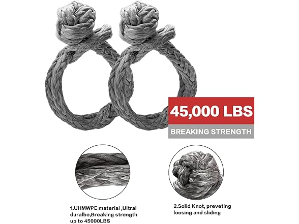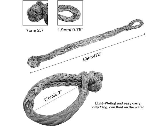 Aspligo- Soft Synthetic Shackle Recovery Kit 3/4Inch x 22inch 45000LBS Breaking Strength UHMWPE Soft Shackle Rope For ATV off-road Truck Jeep