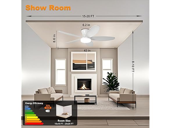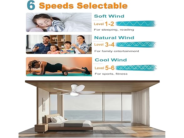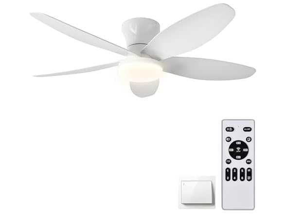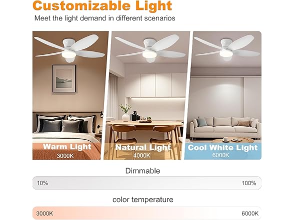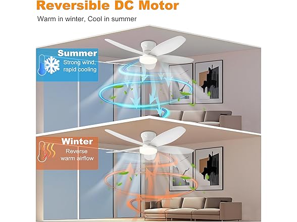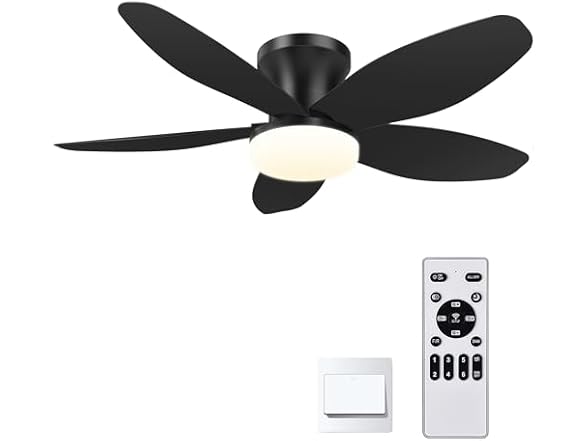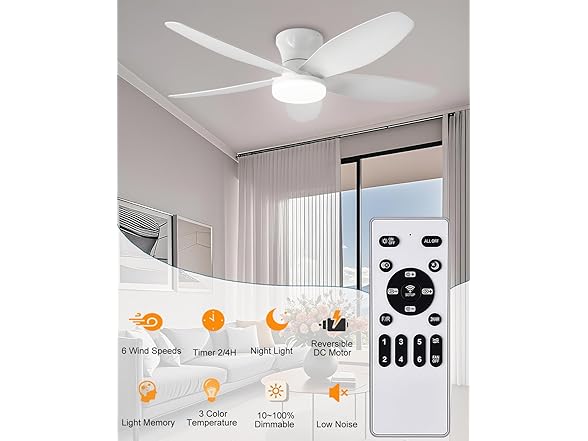 AYSEMO 42" Low Profile Ceiling Fan with Lights & Remote - 6-Speed Wind, Reversible DC Motor, Dimmable 3-Color LED, Timer & Memory Function for Bedroom/Living Room/Patio