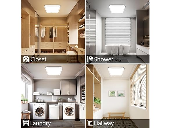 - 【Ultra-Thin Design】Our overhead lighting without wiring has a thickness of super thin 0.6 inches (12mm), making it a perfect replacement for traditional recessed ceiling lights. It not only requires no wiring or drilling, but also gives the ceiling a cleaner, more modern look, enhancing the overall aesthetic of the space. Ideal for various indoor settings, including bedrooms, living rooms, kitchens, closets, showers, hallways, corridors, laundry rooms, pantries, and basements.