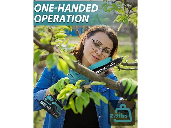 - ✔One Hand Operated - BEI & HONG cordless hand chainsaw only 2.2lbs. The compact design makes it easy for user to control with one hand. Very suitable for women and the elderly, and will not feel tired after a long time of use.